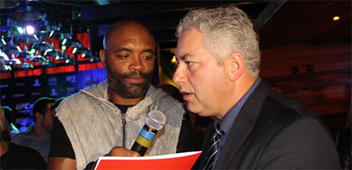 Reconheceu o repórter que entrevista o secretário de Estado Douglas Fabrício (Esporte e Turismo)? Apesar da barba, é ele mesmo, o ex-campeão mundial de UFC Anderson Silva. O lutador foi a Curitiba para o lançamento das vendas de ingressos do UFC 198, que será realizado dia 14 de maio na Arena da Baixada. Bem-humorado, Silva entrevistou Douglas, perguntando sobre a realização do evento no Paraná. E cá pra nós: com um repórter desses só não dá pra brigar...