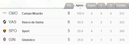 Os vascaínos estão sem segundo lugar, com duas vitórias.