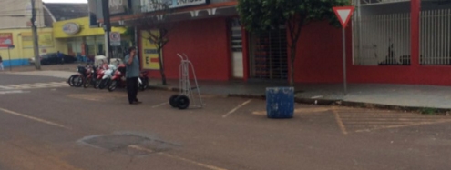 “Na rua São José, centro, ais uma pérola do trânsito de Campo Mourão Fui estacionar, mas não me deixaram... estavam guardando três vagas”.