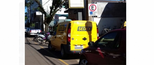 “Na rua Francisco Albuquerque, em frente á agência dos Correios, veículo estaciona na vaga reservada para deficientes”.