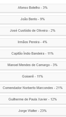 A av. Guilherme de Paula Xavier completou o pódio, com 12%.