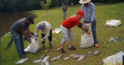 Foram retirados tilápias de 0,5 a 3 kg, bagres de até 8 kg, pacus de 2 kg a 6 kg e matrixã de 0.8 kg a 3 kg.