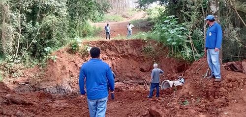 Tá revoltado com os buracos na rua de sua casa? Calma. Lembre-se que sempre tem alguém em situação pior que a gente. Veja como ficou essa estrada rural por causa da chuvarada do início do ano. A prefeitura informou nesta quinta-feira que está terminado melhorias em estradas, pontes e bueiros danificados. Os trabalhos se concentram na bacia do Rio do Campo, Alto Alegre, Km 128 e Piquirivaí.