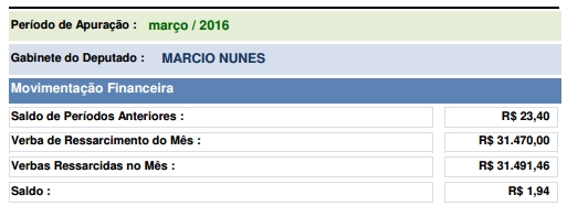 O gabinete do deputado Márcio Nunes teve em março despesas de R$ 31,4 mil