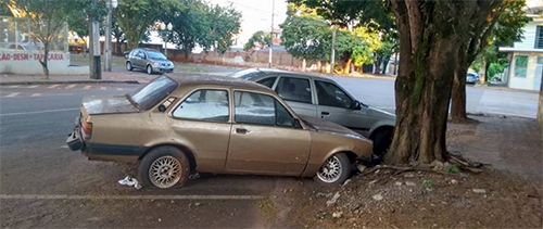 Um Chevette e um Pointer estão há vários meses abandonados na rua Pitanga, quase esquina com a av. Capitão Índio Bandeira.