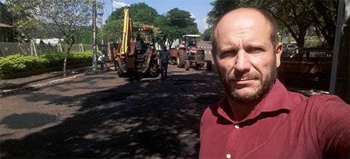 O prefeito de Barbosa Ferraz, Gilson Cassol, foi nesta terça-feira acompanhar o trabalho de tapa-buracos pelas ruas da cidade. Não voltou para o gabinete sem antes fazer uma selfizinha básica, que foi parar no Facebook, é claro. Ah, só faltou soltar "olha o buraquinho!"...