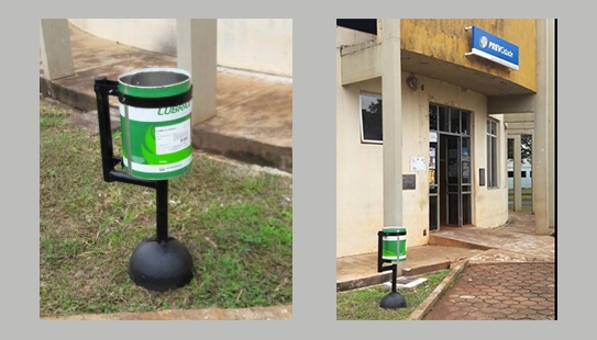 “Novo sistema de lixeiras em Ubiratã, utilizando latão de óleo da Lubrax. Nesse prédio, além do INSS, funcionam a Secretária de Desenvolvimento Econômico, Procon e Divisão de Meio Ambiente e Agricultura”.