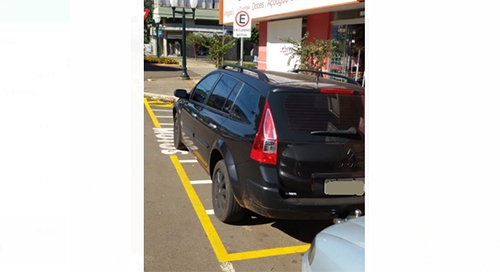 Rua Araruna, entre as avenidas Capitão Índio Bandeira e Manoel Mendes de Camargo. A placa avisa que o local é estacionamento de motos. A sinalização horizontal também. Parece que o condudor desse carro não viu. Ou não entendeu...