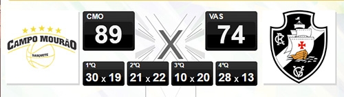 Campo Mourão venceu o Vasco por 89 a 74 no primeiro jogo da decisão da Liga Ouro de Basquete.
