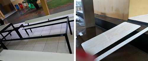 A diretora da escola municipal Eroni Maciel Ribas (Cohapar) postou um desabafo no Facebook. Pudera. Entraram na escola no domingo e retiraram a tampa da mesa pra ser usada como rampa de skate. “Tô indignada... triste”, escreveu Ivanira Alves na rede social. Segundo ela, a escola pede que o muro seja aumentado e que vigias fiquem no local nos finais de semana.