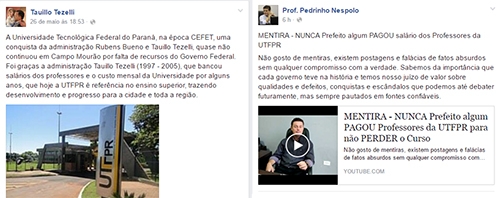 “Mentira. Nunca prefeito algum pagou salário de professor da UTFPR”, respondeu, também no Facebook, o vereador Pedrinho Nespolo.