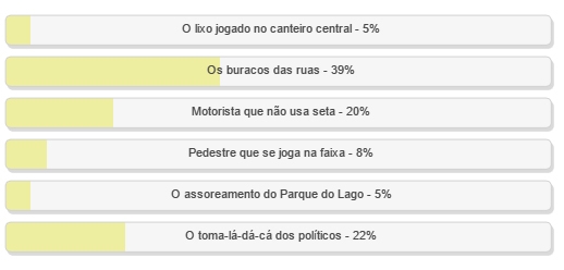 Enquete de Boca Santa, encerrada nesta segunda-feira, deu vitória à alternativa “Os buracos das ruas”, com 39% dos votos.