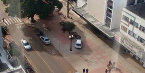 Durante a manhã desta quinta-feira, carro estaciona no meio do calçadão da av. Capitão Índio Bandeira. Já imaginou se a moda pega?...