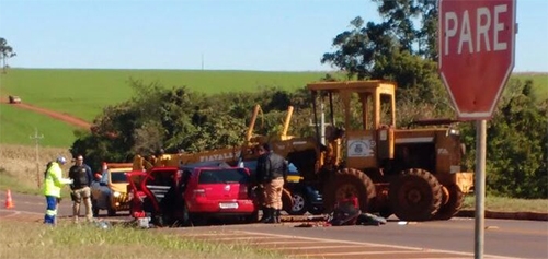 Acidente neste sábado, por volta das 11h30, no trevo de acesso a Campina da Lagoa, na BR-369. Bateram um Golf e uma patrola da prefeitura de Juranda. Um passageiro do carro teve ferimentos graves. O perador da motoniveladora foi preso pela Polícia Rodoviária Federal. Ele estaria embriagado e disse que estava de folga e teria sido chamado para isocorrer outra máquina da prefeitura que tinha encalhado.
