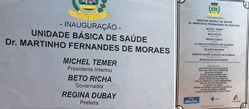 Olha aí a placa de inauguração do posto de saúde do conjunto Fortunato Perdoncini. Todas as obras feitas com recursos federais e inauguradas nos últimos dias em Campo Mourão trazem o nome do presidente interino Michel Temer. Nada de Dilma Rousseff. Foi no governo dela que se provou os projetos e se liberou os recursos. Ah, quem mandou perder o poder...