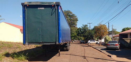 “Existe alguma lei, seja de trânsito ou municipal, que regulamente o estacionamento de carretas nas ruas da cidade? A carreta da foto está estacionada de frente a um terreno baldio, porém, há duas residencias em frente com garagem, o qual, devido a rua ser estreita, é preciso muita manobra para retirar ou colocar o carro no garagem, dando muito trabalho”.