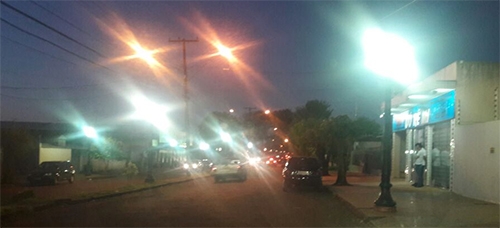“Quadra da av. Guilherme de Paula Xavie, aquele das “brigas” sobre os postes republicanos, está assim. Quero saber se a Justiça proibiu retirar a iluminação antiga ou se é desperdício mesmo...”