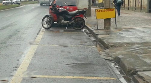 “Na av. John Kennedy (Lar Paraná) comerciante colocou uma faixa destacada em amarelo e uma placa avisando que a vaga é exclusiva de seus estabelecimento”.