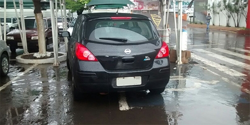 “Se não bastasse ocupar a vaga de deficiente, ainda ocupa a vaga ao lado. Este carro é muito espaçoso”.