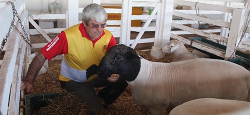 De Colombo: Na foto, Manuel Timóteo Gilaverte Montull, que veio de Colombo/PR para expor 30 animais as raças Dorper e White Dorper.