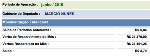 Como havia sobras de quatro centavos de maio, o gabinete de Márcio encerrou junho com R$ 8,79.