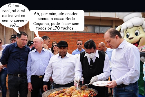 A 26ª Festa do Carneiro no Buraco já foi há mais de uma semana, mas segue rendendo balõezinhos por aqui. Desta vez mostra o ministro da Saúde, Ricardo Barros, sendo servido na hora da retirada do “tacho número um”. Ao fundo, o prefeito de Mamborê, Nei Calori, e o presidente da Santa Casa, José Carlos Laurani, trocam confidências. O secretário Márcio Alencar (Saúde) só observa.