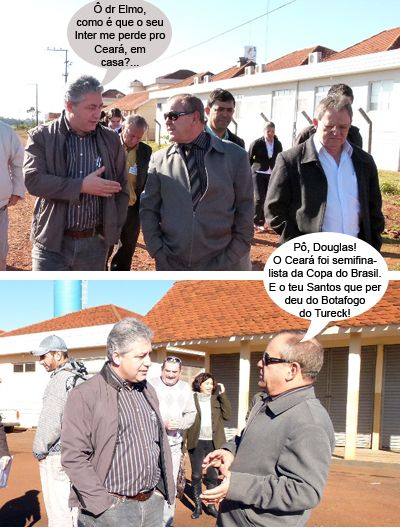 ENQUANTO ISSO, NAS OBRAS DA SANTA CASA... Os clics são de ontem de manhã, na Santa Casa de Campo Mourão, onde foi anunciada a retomada das obras da nova maternidade e do pronto socorro da instituição. As ampliações são feitas com recursos do governo do Estado. O deputado Douglas Fabrício e o presidente da Santa Casa, Elmo Linhares, visitaram o canteiro de obras junto com os empreiteiros. O vereador Sidnei Jardim, a chefe da Regional de Saúde, Nilma Ladeia, e o chefe do Núcleo da Seab, Edson Battilani, também estiveram por lá.