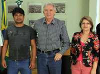 O cacique Mbey Mbey Tupã, de uma aldeia de índios guaranis, foi fazer uma visitinha ao prefeito Nelson Tureck. Estava junto com a professora Sinclair Pozza Casemiro, que coordena pesquisas do Caminho de Peabiru na região. Tupã foi agradecer o apoio da prefeitura na instalação de uma aldeia na região do Barreiro das Frutas, onde vão morar cerca de 30 índios. Eles compraram a área. Tá pensando o quê!...
