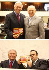 O prefeito Nelson Tureck não se limitou ao encontro com o governador Beto Richa ontem, não. Ele também deu uma passadinha pela Assembleia Legislativa. Aliás, ele já tinha feito isso semana passada. Ontem, Tureck foi levar convites para a Festa Nacional do Carneiro no Buraco. Olha ele aí, com os deputados Ademar Traiano e Reni Pereira. É, uns têm garoto propaganda, outros têm “prefeito-propaganda”...