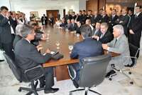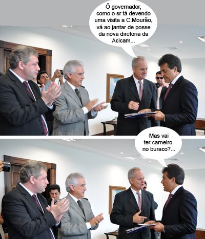 ENQUANTO ISSO, NA REUNIÃO COM O GOVERNADOR... Os cliques são do Palácio Iguaçu, onde o presidente da Acicam, Nelson Botega, aproveitou a audiência com o governador Beto Richa para convidá-lo para a solenidade de posse da nova diretoria da entidade. A eleição acontece no próximo dia 11 e a posse será no mês seguinte. A Acicam é a mais antiga entidade empresarial de Campo Mourão. Richa só veio uma vez ao município depois que assumiu o governo, na Festa do Carneiro no Buraco do ano passado.
