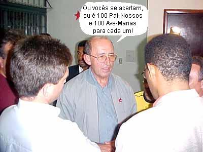Quem também prestigiou o evento do PT foi o professor AssabidoRhoden. Não que ele tenha alguma simpatia pelo partido. Muito pelo contrário. Assabido só foi ao local para reencontrar um velho amigo, o Padre Roque. Os dois se conheceram no seminário em Santo Ângelo (RS). Assabido estava saindo e Roque chegando. Ih, isso faz teeeeeeeemmmmpo!...