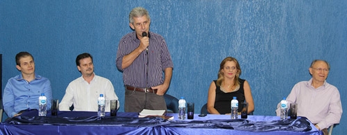 Aconteceu nesta quinta-feira a posse da nova diretoria do Sindicato Empresarial do Comércio Varejista de Campo Mourão e Região, que abrange 19 municípios. A presidência, pra variar, segue com Nelson Bizoto. Olha ele aí, na hora do discurso. A prefeita Regina Dubay prestigiou o evento. Pelo foto, como dá pra ver, tá tudo azul pelos lados da nova diretoria...