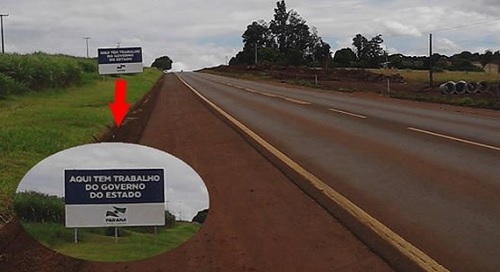 "Placa colocada no trecho de duplicação da Viapar, na PR-317, entre Campo Mourão e Maringá".