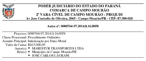 A empresa Marestur Transportes Ltda, de Londrina, processou a prefeitura de Campo Mourão por danos morais.