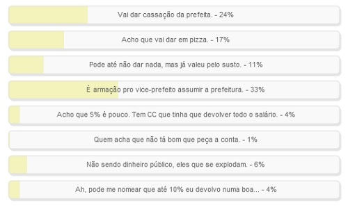 Venceu a alternativa "É armação pro vice-prefeito assumir a prefeitura", com 33% dos votos.