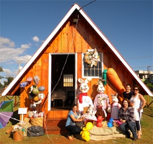 Prefeitura distribuindo chocolate nesta época do ano é fichinha. Em Roncador, a prefeitura tratou de fazer a "Casa do Coelho". Se o Papai Noel tem, por que não o Coelhinho, né? A casa fica na praça Moisés Lupion e inclu o "cantinho ucraniano". A prefeita Marília Perotta esteve por lá a aprovou o trabalho. O cenário foi feito por alunos da professora Zilda de Fátima Rosa. A roupagem dos coelhinhos ficou por conta da servidora Ana Coelho. Isso mesmo: Ana Coelho. Ah, tá no nome...