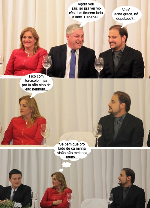 Olha aí mais cliques da sessão solene que a Câmara realizou na quarta-feira passada. A prefeita Regina Dubay ficou rodeada de adversários políticos. De um lado, o presidente da Câmara, Pedrinho Nespolo. Do outro, o deputado Douglas Fabríco e o vice-prefeito Rodrigo Salvadori. Digamos que alguns "viraram" adversários, né?...