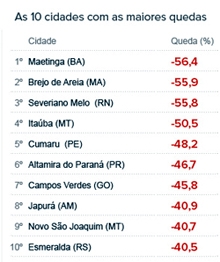 É Altamira do Paraná, que ficou em sexto lugar, com redução de 46,7%.