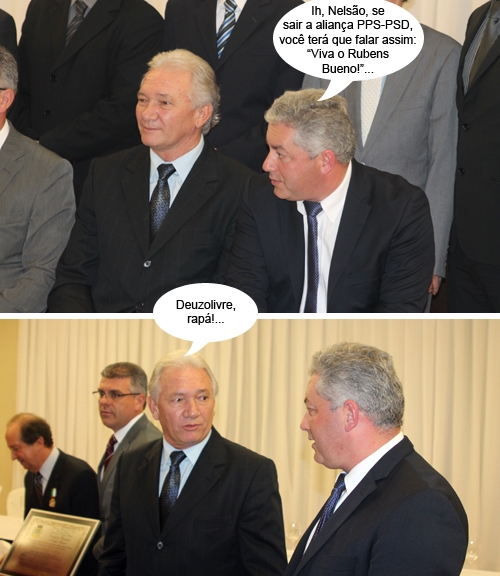 Olha aí mais cliques da sessão solene que a Câmara de Campo Mourão realizou na quarta-feira. O ex-prefeito Nelson Tureck e o deputado Douglas Fabrício conversaram nos bastidores. Os dois foram adversários pela prefeitura na eleição de 2004. Agora, o tema da conversa foi a possível aliança entre o PPS de Douglas e o PSD de Tureck nas eleições deste ano. É, o mundo dá voltas tão rápidas...