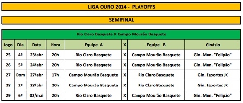 Já saiu a tabela da semifinal da Liga Ouro de Basquete.