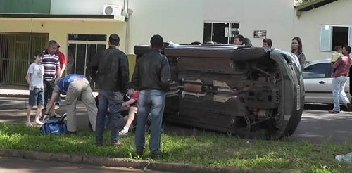 Aconteceu de novo. Batida de carro em Campo Mourão com veículo tombado. Desta vez foi na av. José Custódio de Oliveira, por volta das 9h desde domingo. O Agile, com placa de Mamborê, chocou-se com um Polo que estava estacionado e "virou". Duas pessoas tiveram ferimentos leves. Agora, cá pra nós: que diacho que os carros não querem ficar mais com as rodas no chão nesta cidade?...
