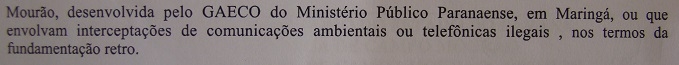 "...e no que tange às declarações prestadas pelo requerente junto à investigação alusiva ao Município de Campo Mourão, desenvolvida pelo Gaeco...", frisa o despacho (veja reprodução acima).