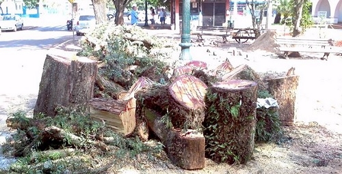 Não bastassem as árvores públicas que só derrubadas a torto e a direito pelas ruas de Campo Mourão, neste domingo de madrugada aconteceu mais essa. Uma caminhonetona bateu e derrubou uma árvore na rua Pitanga, no centro da cidade. Hummmm, qual é mesmo o santo protetor da arborização pública?...