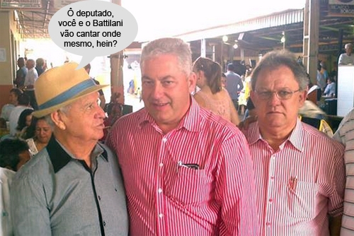 O clic é deste domingo, na Festa da Solidariedade do Lar dos Velhinhos. O deputado Douglas Fabrício prestigiou o evento e, como dá pra ver, usou uma camisa igualzinha à do vereador Edson Battilani. O professor Joani Teixeira não deixou de reparar, não. Ah, vá ver é uniforme novo do PPS...