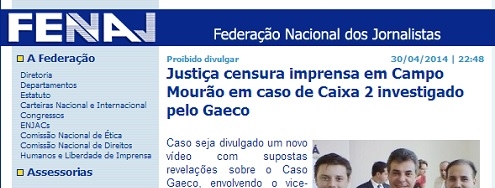 A Federação Nacional dos Jornalistas publicou em seu site matéria sobre a censura prévia imposta em Campo Mourão.