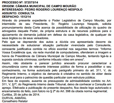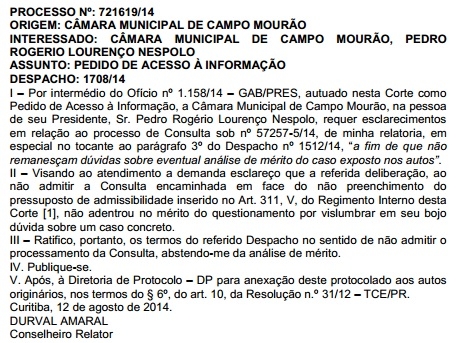 O Tribunal de Contas do Estado publicou nesta quinta-feira a resposta a um novo ofício enviado pela Câmara de Campo Mourão.