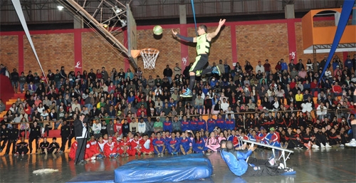 O ginásio Alceu Roque Devitte, em Mamborê, ficou lotado nesta sexta-feira para a cerimônia de abertura da fase regional dos 28º Jogos da Juventude do Paraná. A equipe Ginasloucos, de Dourados/MS, foi uma das atrações após o desfile das delegações. A Regional segue até o próximo dia 17, com a participação de 31 municípios (22 da Comcam). Os campeões de cada modalidade se garantem na fase final, mês que vem, em Apucarana.