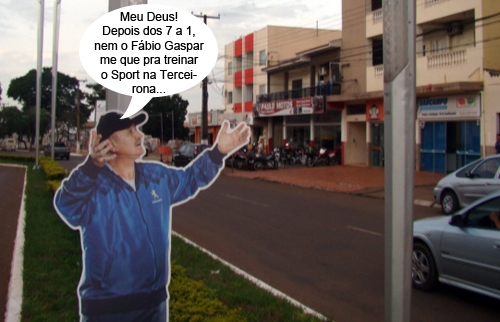 O clic é do prolongamento da av. Capitão Índio Bandeira, onde apareceu um flyer do técnico Luiz Felipe Scolari em tamanho real. O ex-treinador da seleção brasileira está apelando pra alguma coisa. Ah, mas depois daqueles 7 a 1, nem Sport pra Terceirona, nem América pro Amadorzão querem o Felipão, não...