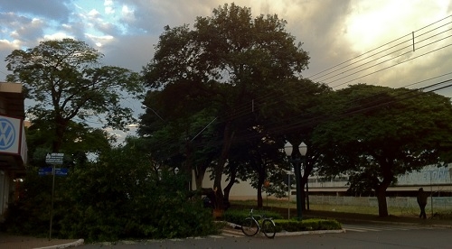 Árvore caída no centro de Campo Mourão, na manhã desta quarta-feira. Rodrigo