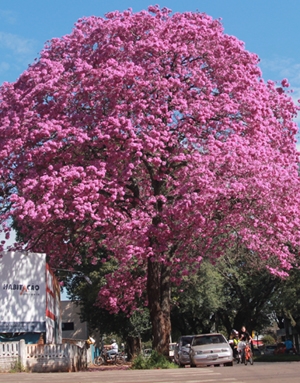 "Neste começo de inverno, imponente ipê roxo embeleza e impressiona quem passa pela av. Goioerê, no centro de Campo Mourão". Gracieli